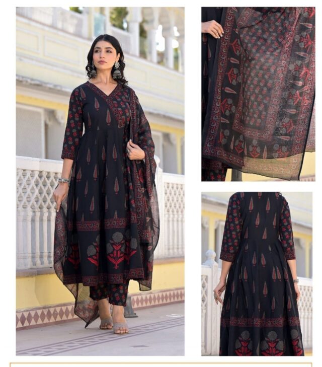 Elevate Your Festive Wardrobe with Timeless Elegance! Add a touch of grace to your style with our Bagru Hand Block Printed Cotton Designer Kurti & Skirt Set, paired with a soft…